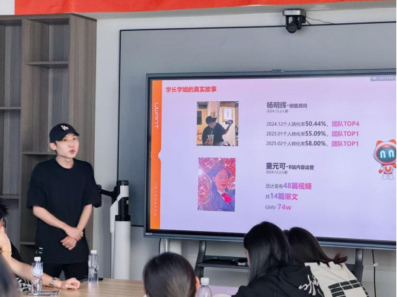 每家企业的调研均设置“企业情况介绍”“学长学姐分享”“学生问答”三大核心环节。在企业介绍环节,除了对企业发展历程、产品业务等的介绍,也详细讲解了电商行业的岗位矩阵。西安维帆的HR指出“从直播运营、内容策划到数据分析、客户服务,每个环节都需要既懂技术又懂市场的复合型人才”;佳帮手集团HR还分享了“从校园到职场”的成长案例,指出“扎实的专业基础+对用户需求的敏感度”是电商新人的核心竞争力。