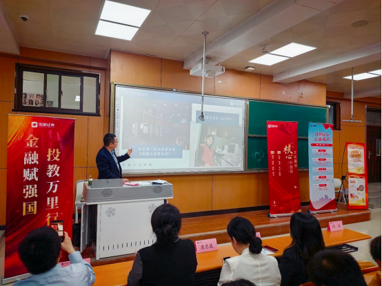 为提升学生金融素养,强化风险防范意识,构建科学理财观念,9月25日下午,商学院金融科技系特邀国都证券西安营业部资深投资顾问祝波和孙恒宇老师开展“金融风险防范与理财普及”专题讲座。金融科技系全体教师及学生参加。讲座采用“理论阐释 + 案例剖析 + 互动答疑”的形式,为师生呈上一场兼具实用性与针对性的金融知识盛宴。