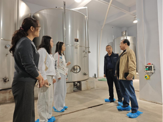 在生产车间,调研团现场观摩了海红果的清洗、压榨、发酵、蒸馏等工序。流水线上,一颗颗鲜红的果实被加工成果酒、果汁、白兰地等系列产品。