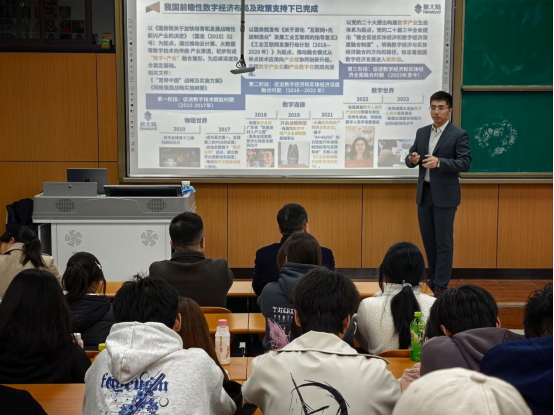 2025级金融科技专业以“数字人民币与金融科技发展新机遇” 为主题开展入学教育讲座,特邀北京新大陆数字技术有限公司旗下北京新大陆时代科技有限公司数字经济产品部售前工程师孔德亚主讲。讲座立足数字经济宏观背景,结合《全球数字经济白皮书(2024年)》及我国数字经济发展三阶段政策脉络(2010-2017 年数字技术赋能期、2018-2022 年深度融合期、2023 年至今全面融合期),系统解读数字经济对全球及中国经济社会结构的重塑作用,明确 “数据作为新型生产要素”的核心价值。