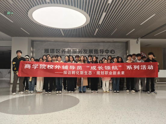 辅导员祝康富与校外辅导员刘波共同带领2025级大数据管理与应用、金融科技专业学生代表,先后走进雁塔区社会组织培训孵化基地与雁塔区养老服务发展指导中心,开展 “校企互访・职引未来” 社会实践研学及 “决胜青春赛道・点亮职业梦想” 校外主题班会,将教学场景延伸至智慧养老产业一线。