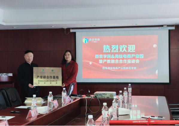 数字商务系主任丁爱芹、直播营销与数字化转化微专业负责人刘娟带领8 名学生赴陕西海丝电商产业园,举行 “产学研合作基地” 授牌仪式。在产教融合座谈会上,海丝电商产业园董事长李小庭强调校企合作对产业发展的重要性,园区校企合作负责人程鑫源详解发展规划;丁爱芹介绍学院学科特色与微专业建设创新举措。双方围绕课程开发、实践教学、项目孵化等议题达成共识,明确通过资源共享打通理论到实践的 “最后一公里”。