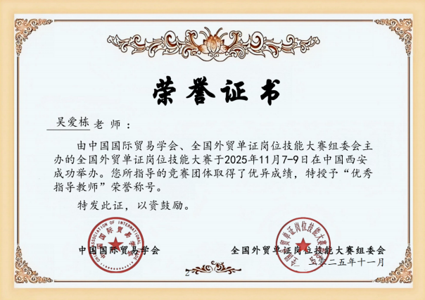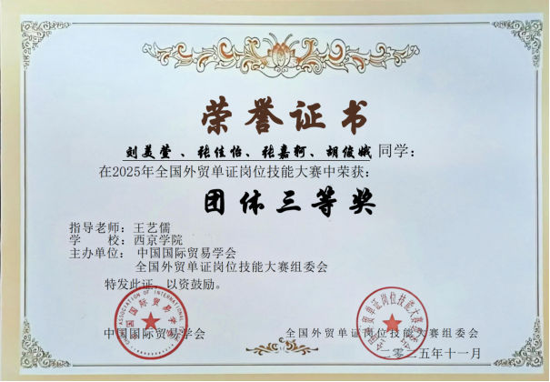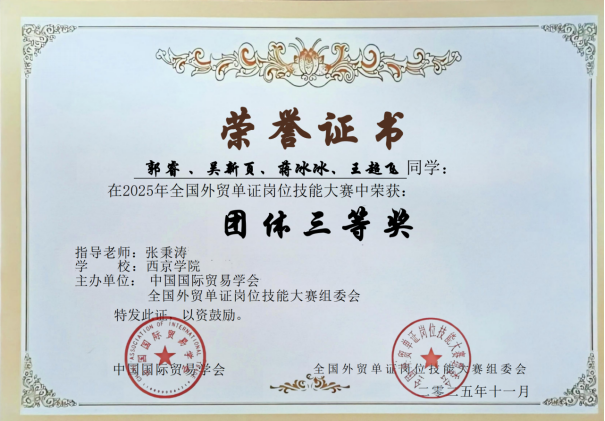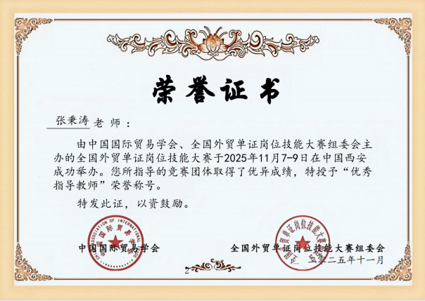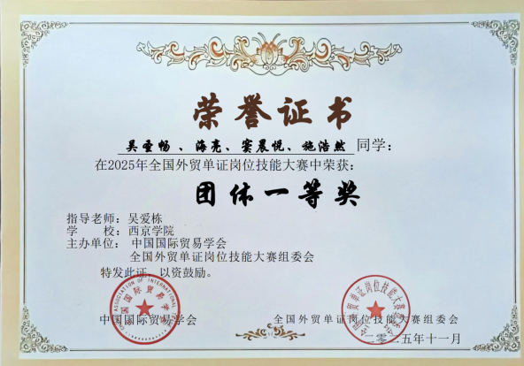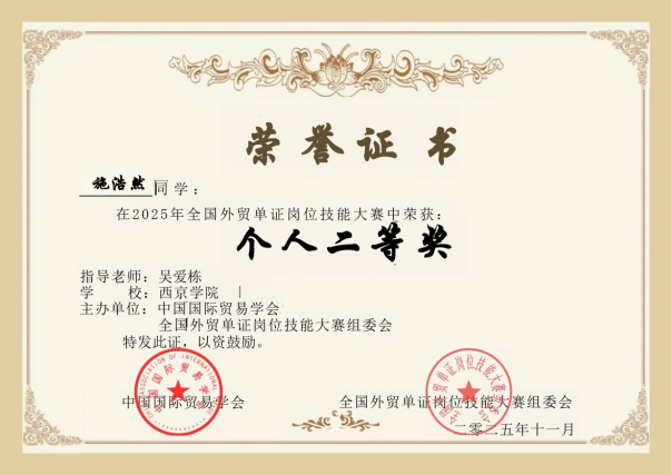 由中国国际贸易学会主办的2025年“智欣联创”杯全国外贸单证岗位技能大赛圆满落幕。商学院国际经济与贸易专业5支参赛团队在国赛中表现亮眼,共斩获2项个人一等奖、6项个人二等奖、4项个人三等奖,以及1项团体一等奖、4项团体三等奖。指导教师吴爱栋、张秉涛获评“优秀指导教师”,充分彰显了我校国贸专业的育人成效。