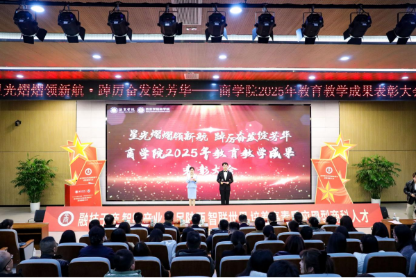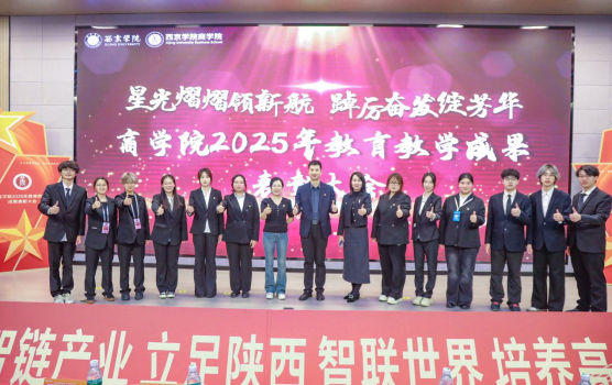 岁序更替,华章日新;弦歌不辍,薪火相传。12月24日下午,西京学院商学院“星光熠熠领新航・砥砺奋进绽芳华”2025年教育教学成果表彰大会在工程舫报告厅隆重举行。校长助理刘鹏、各职能部门代表及学院师生齐聚一堂,共同见证荣耀时刻。