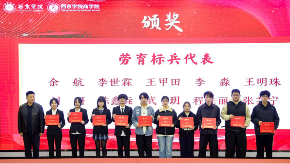 大会在庄严热烈的氛围中拉开帷幕。赵文杰宣读优秀学生及先进班级表彰决定。现场为“五育之星”“语言之星”“心语卫士”“领航先锋” 等各类优秀学生代表,以及综合素质先进班级、学风样板班级颁奖,表彰他们在德智体美劳各方面的突出表现,展现了商学院在立德树人、五育并举方面的扎实成效。