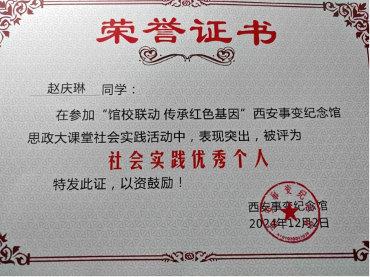 从一名普通大学生逐步成长为在思想、学业、竞赛、服务等方面全面发展的青年先进典型,赵庆琳以实际行动践行了“信仰引领成长,实干成就未来”的奋斗理念。其先进事迹深刻表明:新时代青年榜样不仅体现在荣誉数量上,更在于始终保持昂扬向上的精神风貌、坚守服务人民的根本宗旨、筑牢听党话、跟党走的理想信念。