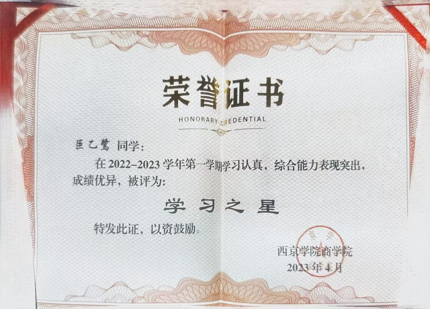 3.2023年4月被评为“学习之星”;