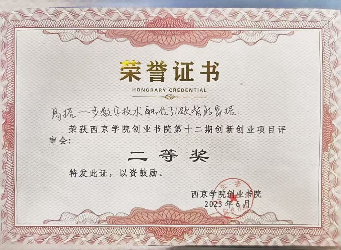 5.2023年6月荣获西京学院创业书院第十二期创新创业项目评审会“二等奖”;