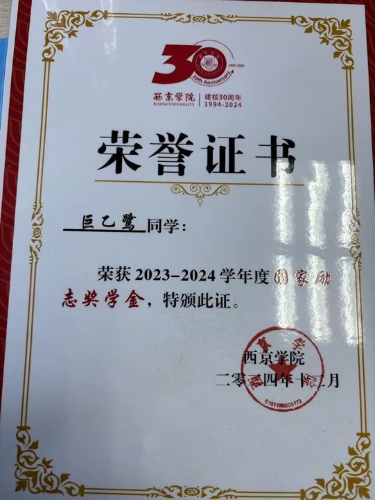 11.2024年12月荣获2023-2024学年度国家励志奖学金;
