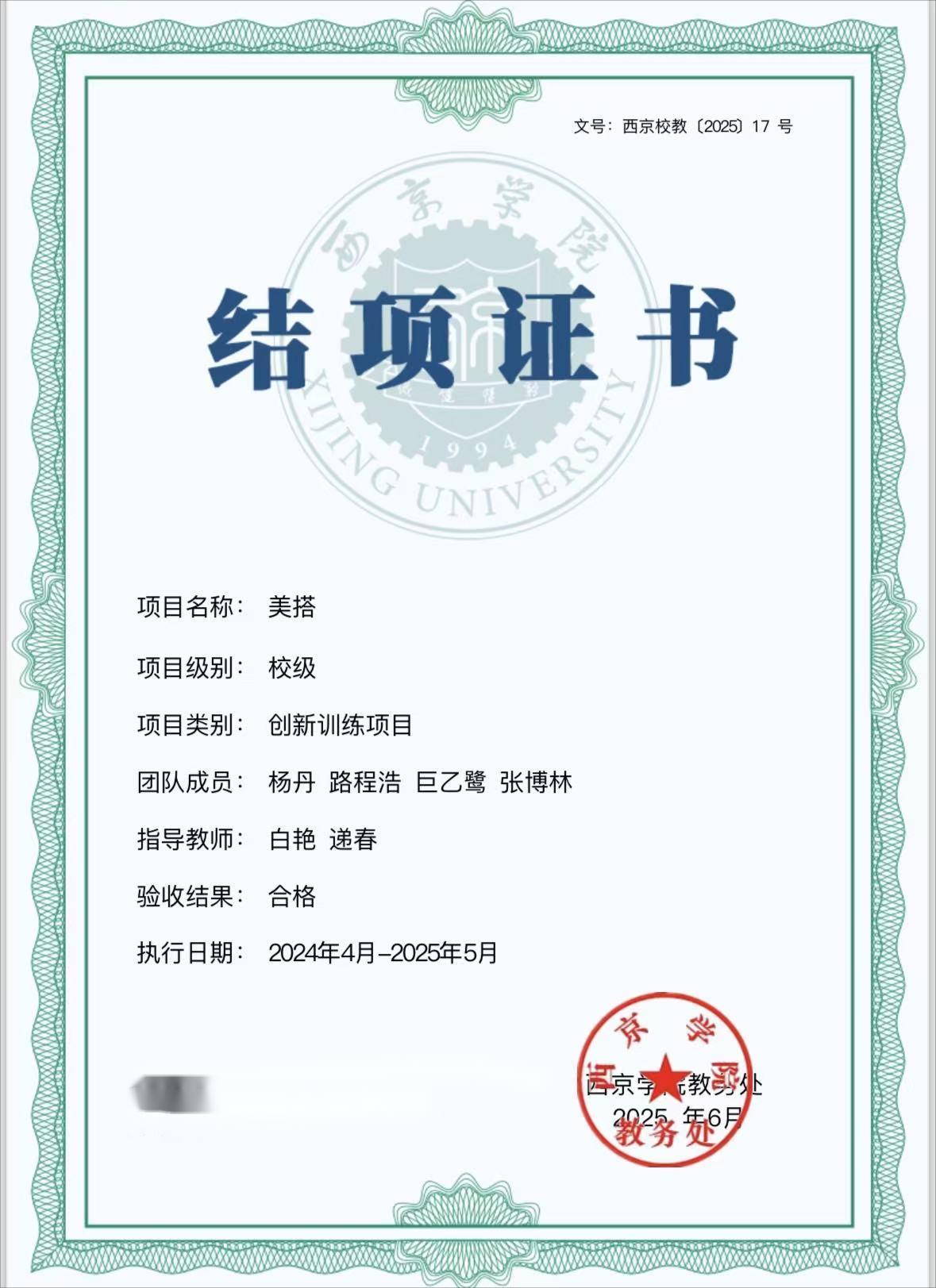 12.2025年5月取得大学生创新创业训练计划校级立项证书。