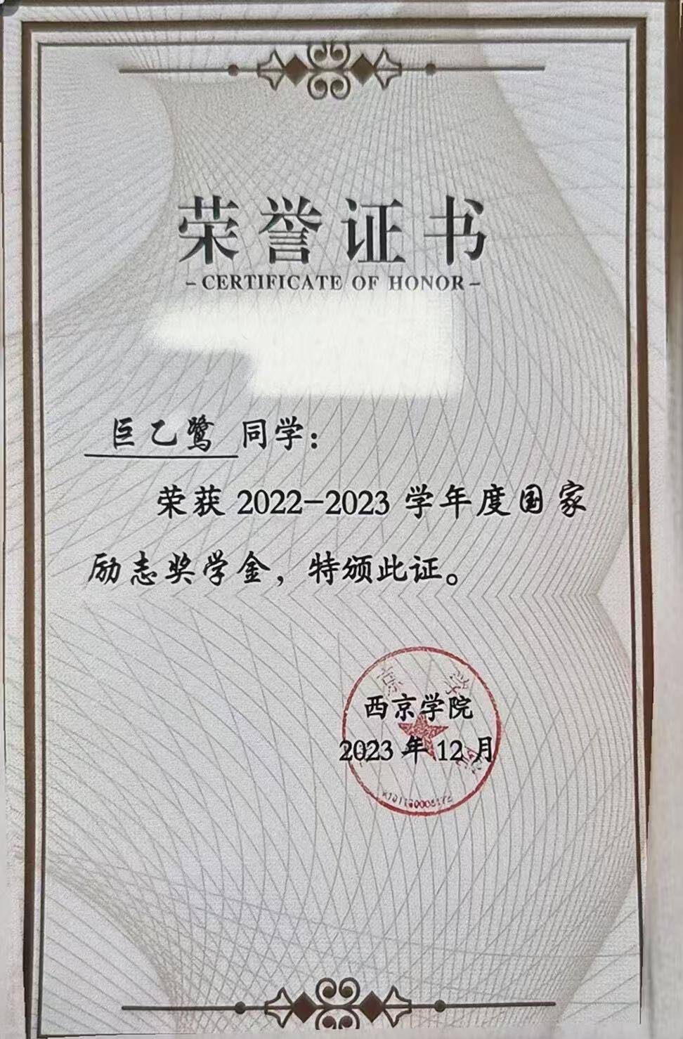 8.2023年12月荣获2022-2023学年度国家励志奖学金;
