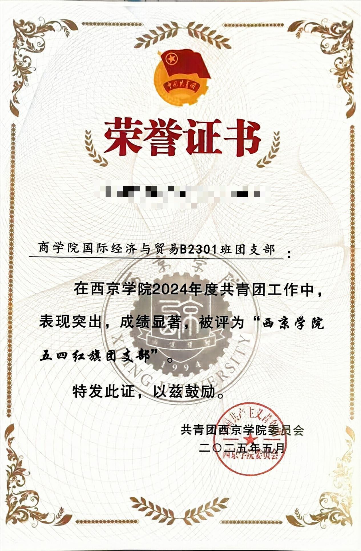 7.2024年10月荣获:西京学院商学院“五育”创先争优暨先进典型评选活动“美育之星”;