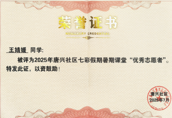10.2025年7月荣获:七彩假期暑假课堂“优秀志愿者”。