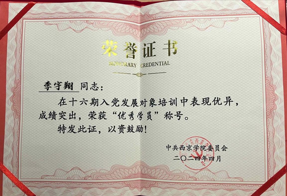 7.2024年4月荣获第十六期入党发展对象“优秀学员”称号;