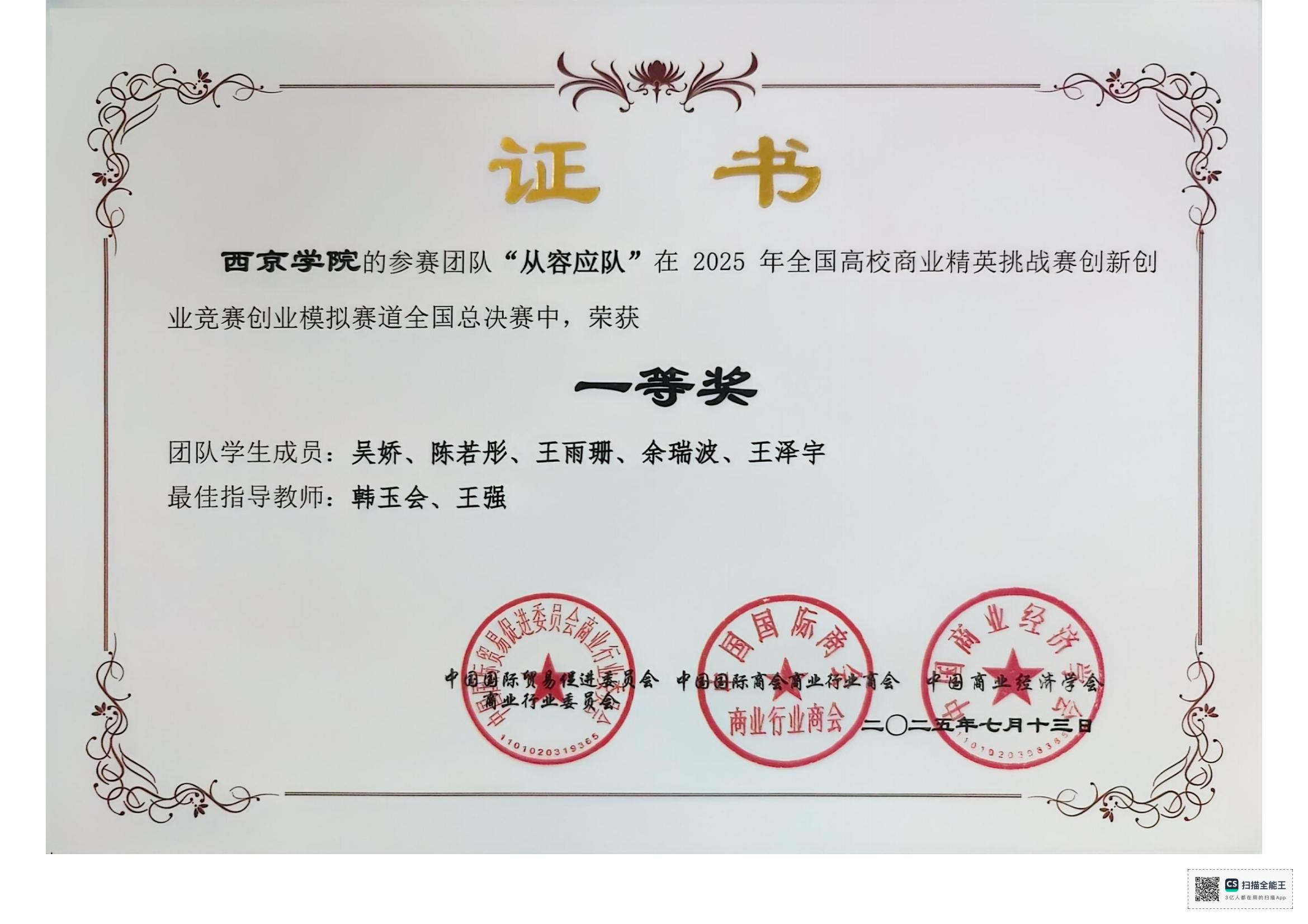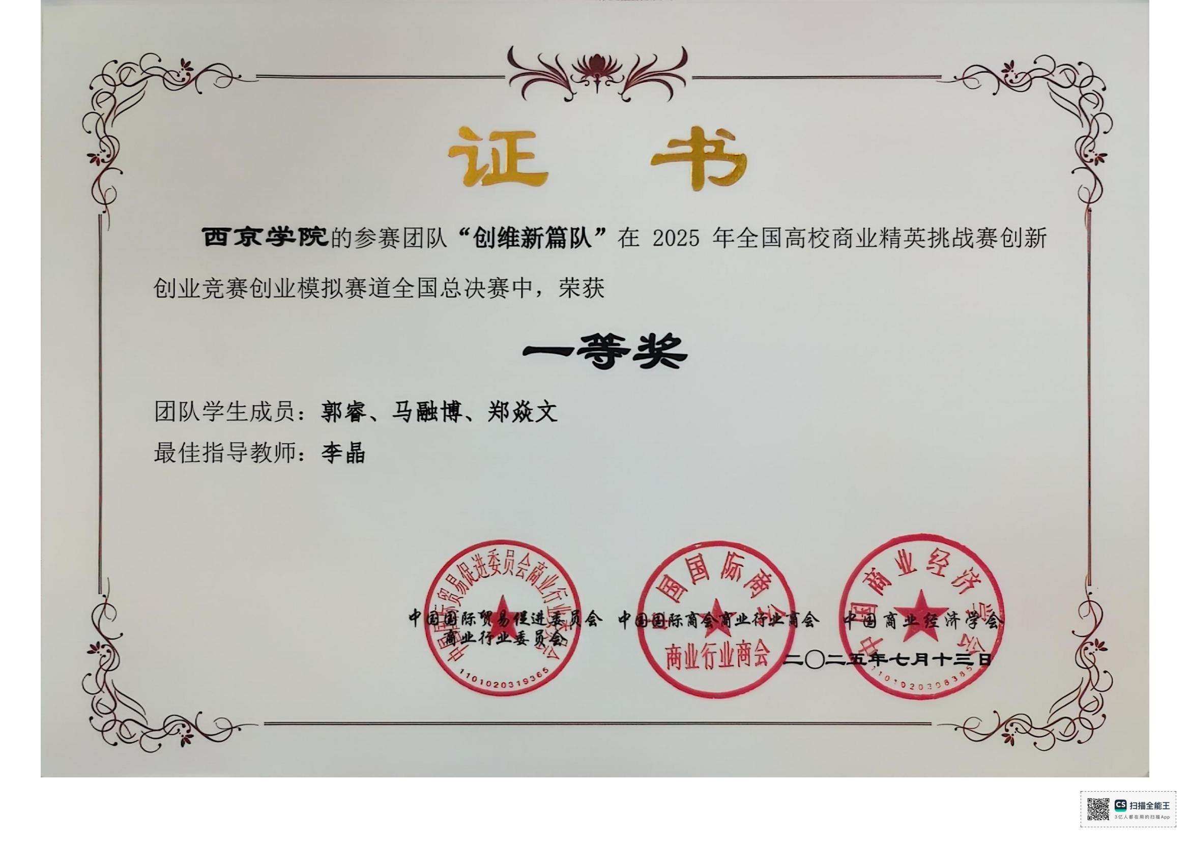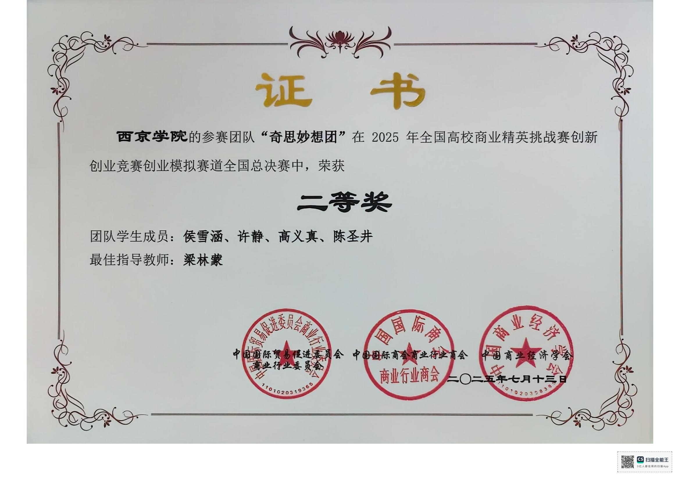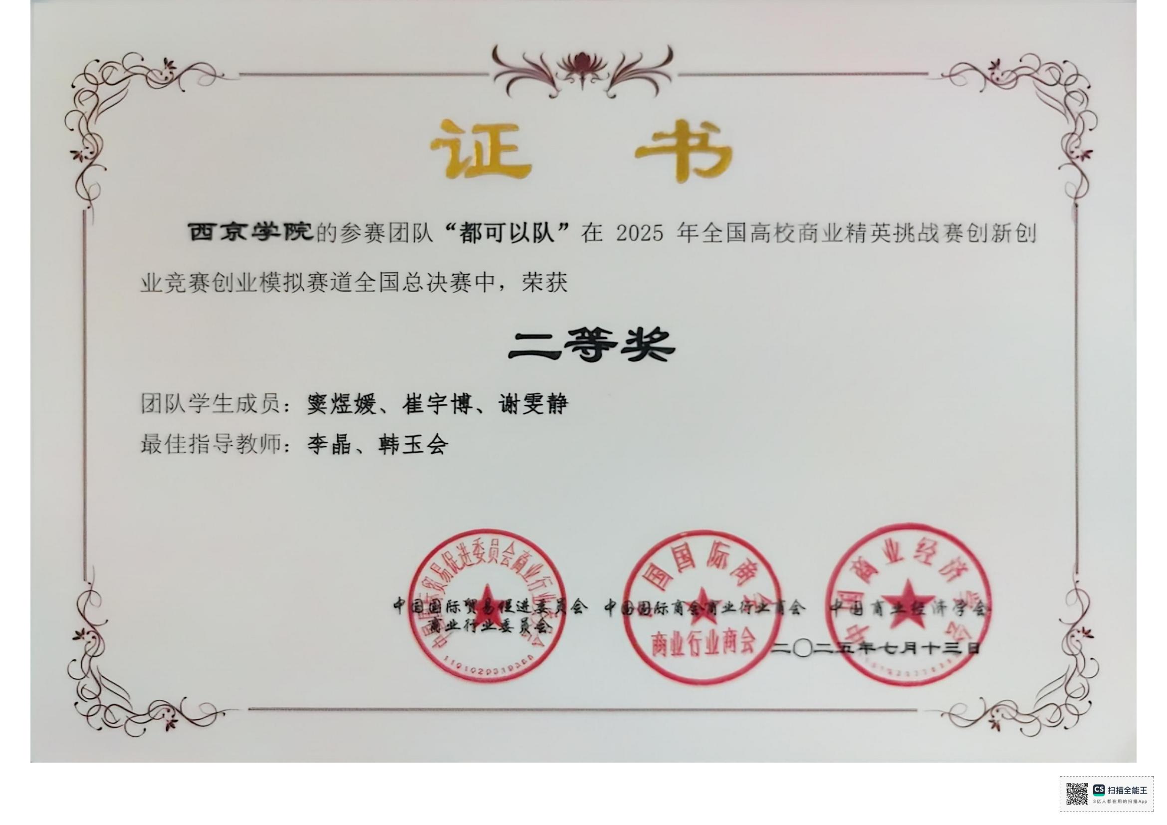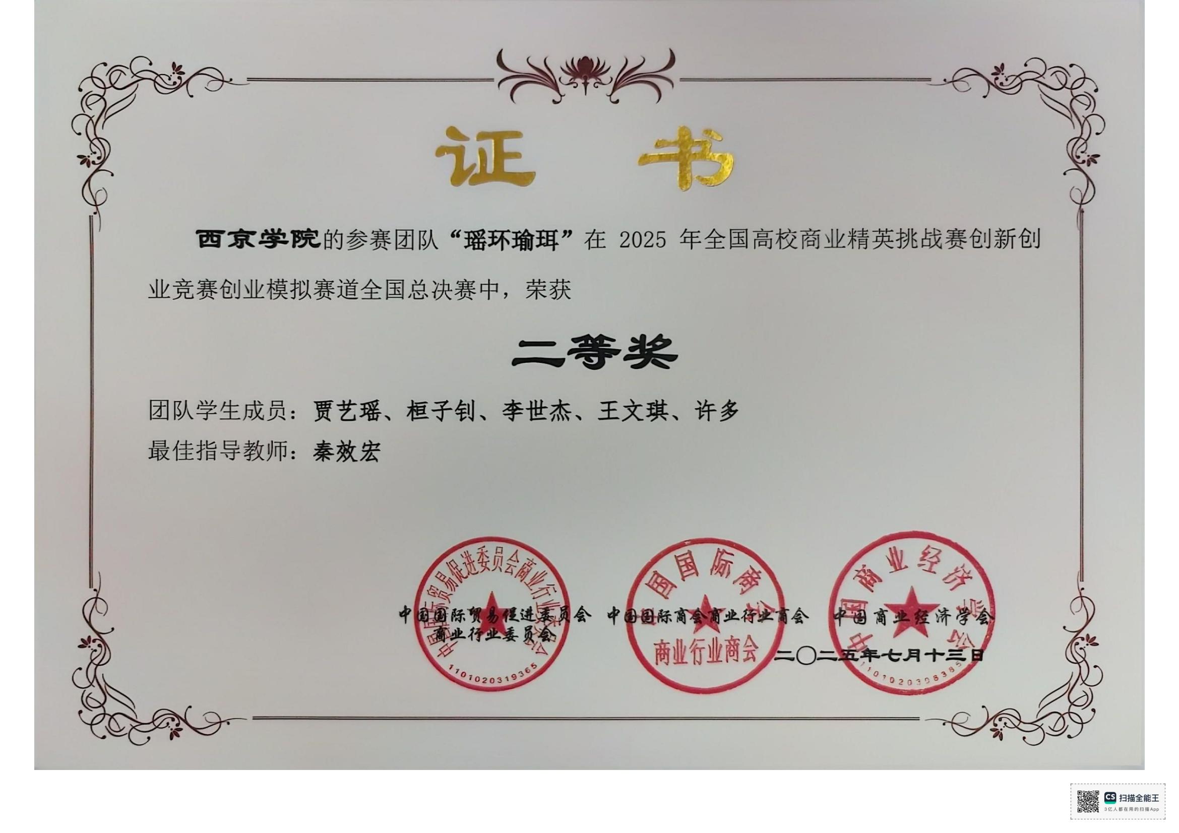 2025年全国高校商业精英挑战赛创新创业竞赛创业模拟赛道全国总决赛获奖情况